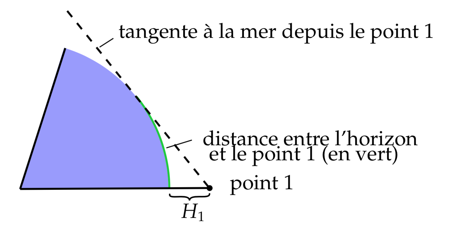 | Distance du point 1 jusqu'à l'horizon |